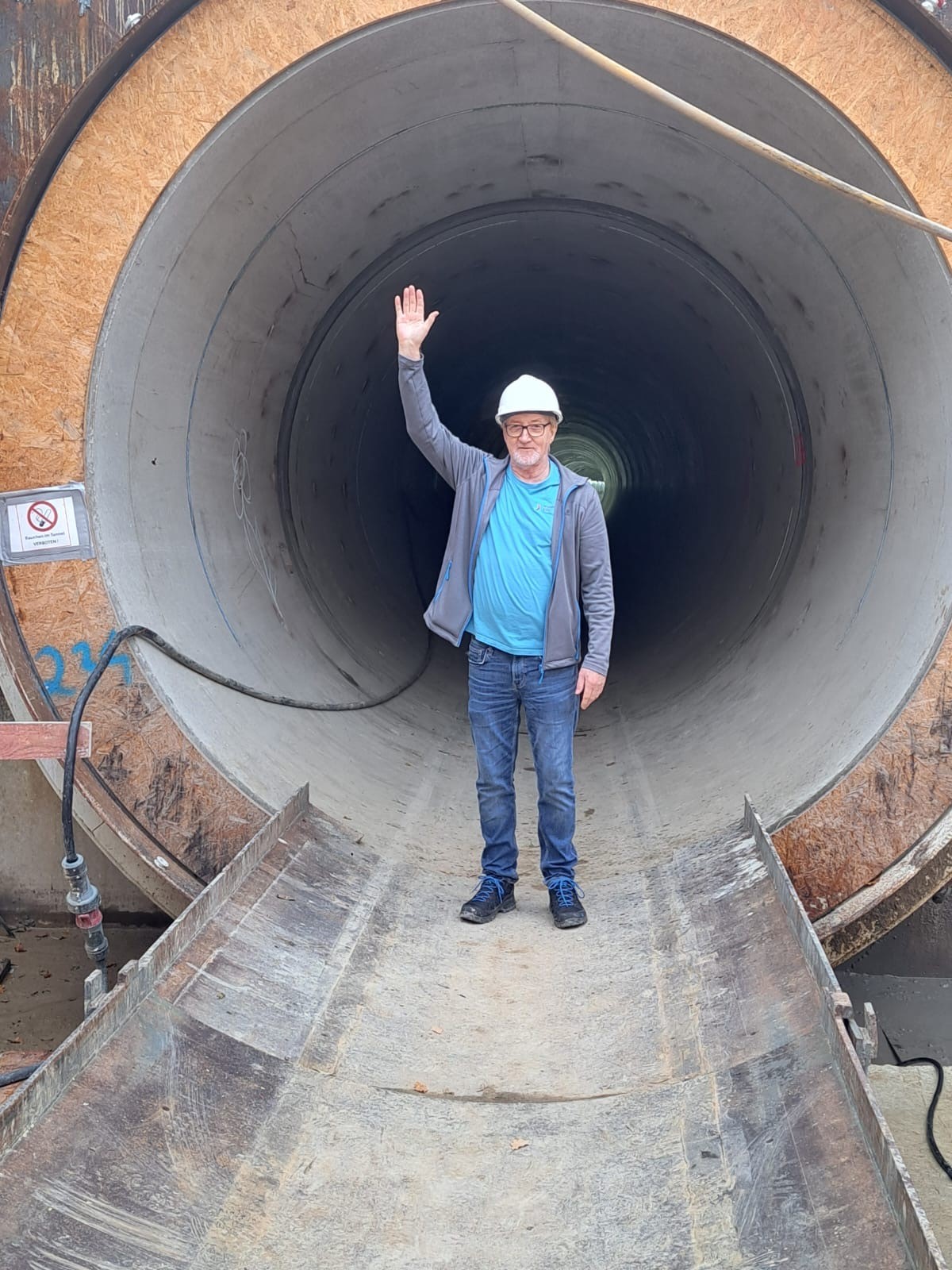 Eine tolle Gelegenheit bot sich für Kölnerinnen und Kölner bei strahlendem Novemberwetter: Die StEB boten Führungen durch den neuen Rheindüker an. Der rund 940 Meter lange Tunnel verbindet die Stadtteile Köln-Niehl und Köln-Stammheim und wird in Zukunft das Abwasser unserer Stadt unter dem Rhein ins Großklärwerk Stammheim leiten. Bis zu 6.000 Liter Abwasser können pro Sekunde durch den Düker fließen – das entspricht einer Abwassermenge von bis zu 1,3 Mio. Menschen.