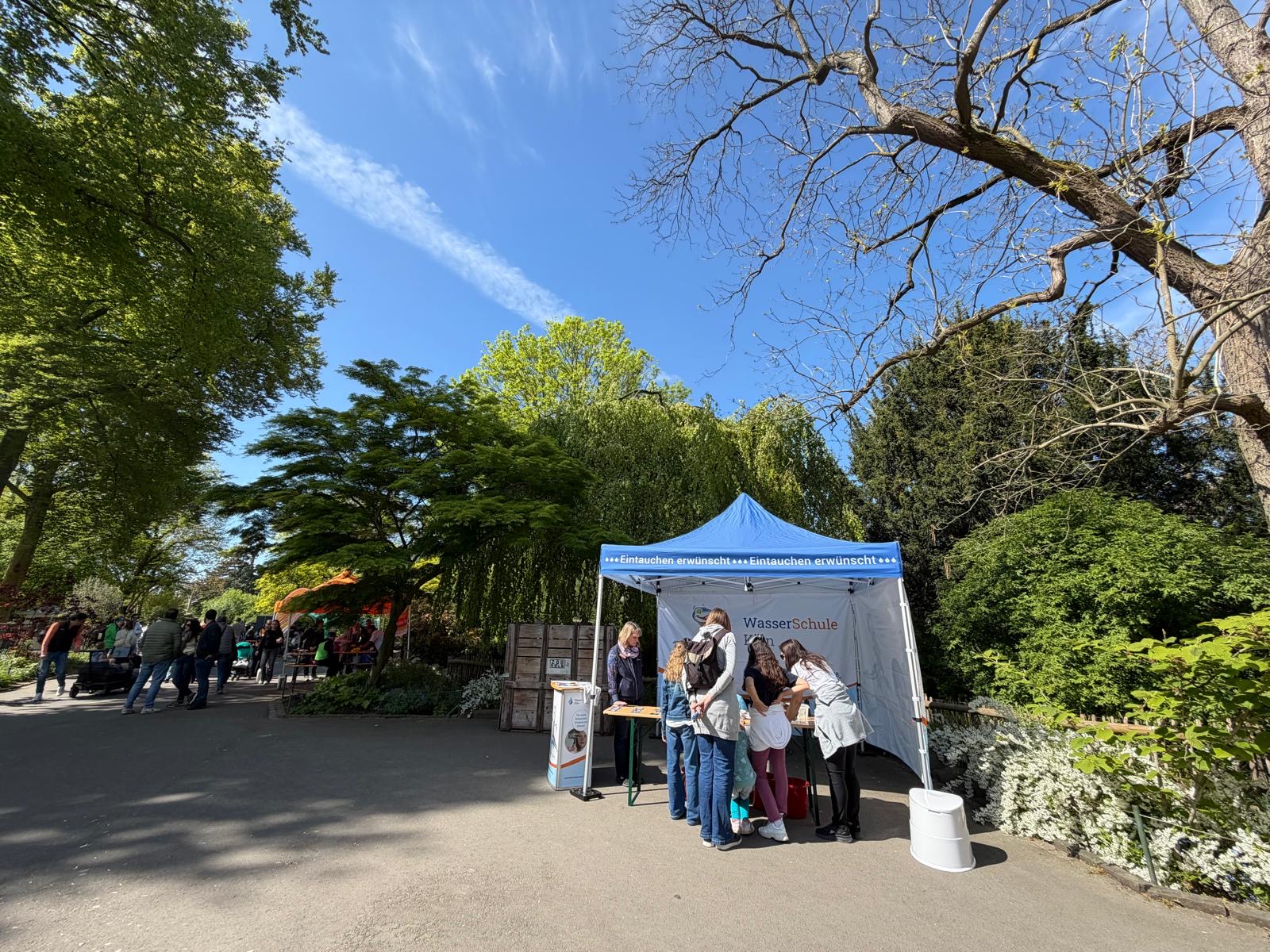 Davon, dass Klimaschutz viel mehr als trockene Theorie bedeutet, konnten sich die etwa 8000 Besucher:innen des Kölner Zoos am vergangenen Sonntag live überzeugen: Ob mit dem Fahrad Strom erzeugen oder am Stand der WasserSchule die Auswirkungen von Flächen-Entsiegelungen für Starkregenereignisse experimentell nachvollziehen – Maßnahmen zum Klimaschutz sind breit gefächert und jede:r kann etwas tun!